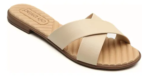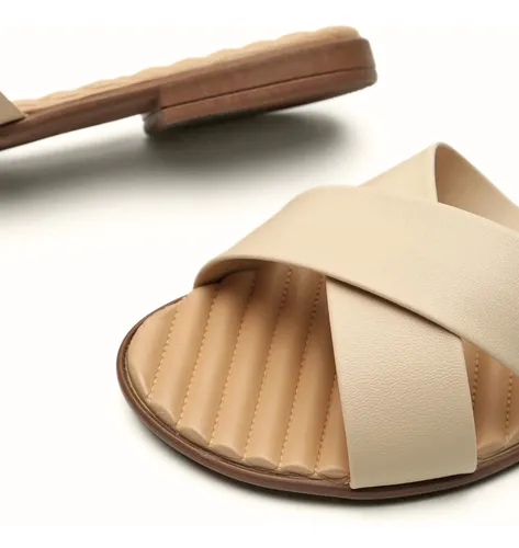 Estilo: É uma rasteirinha ou tamanco tipo slide (aberto atrás).